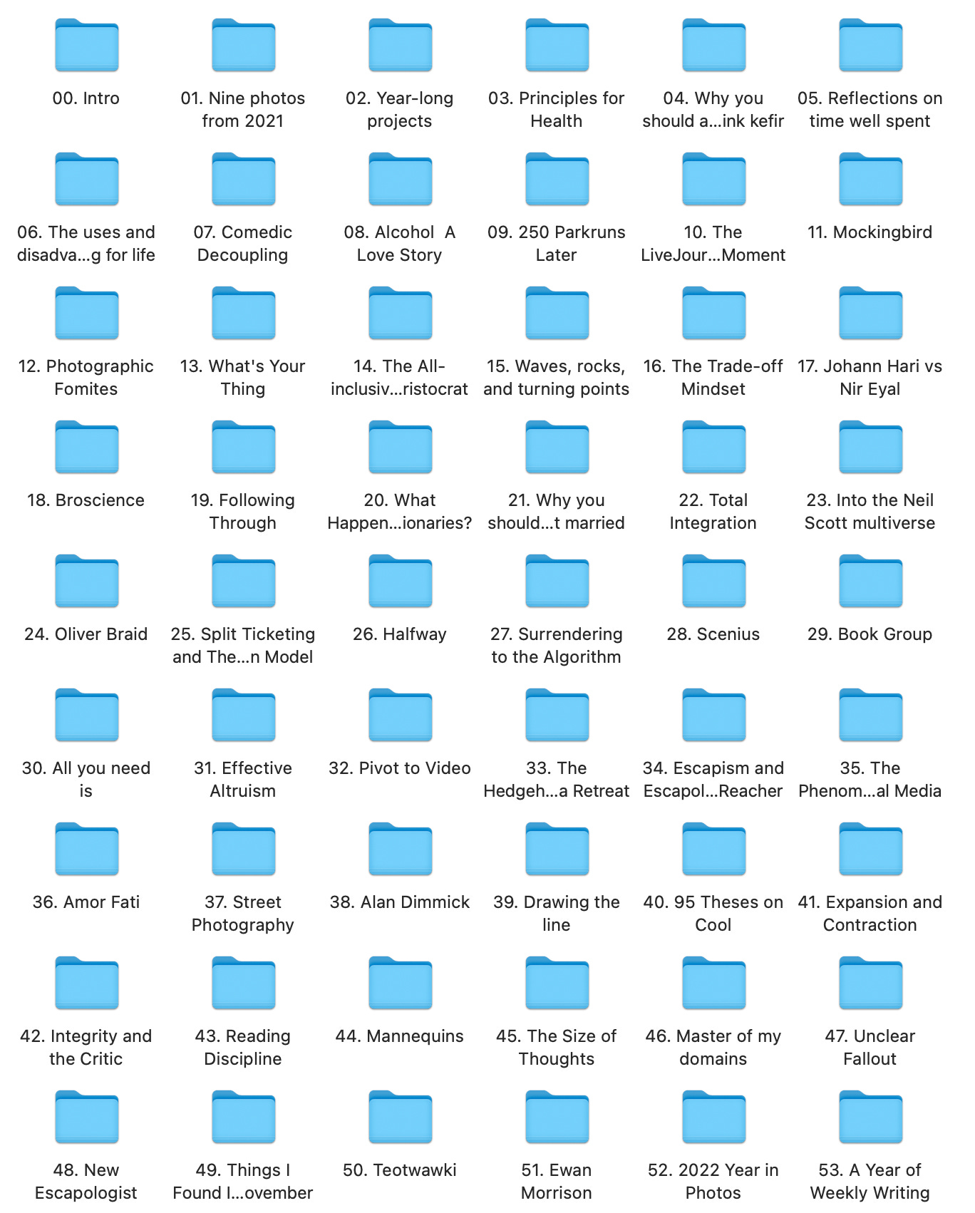 I find the infinite scroll of the Substack archive somewhat frustrating, so have put together a list of all 53 posts from 2022 here:
