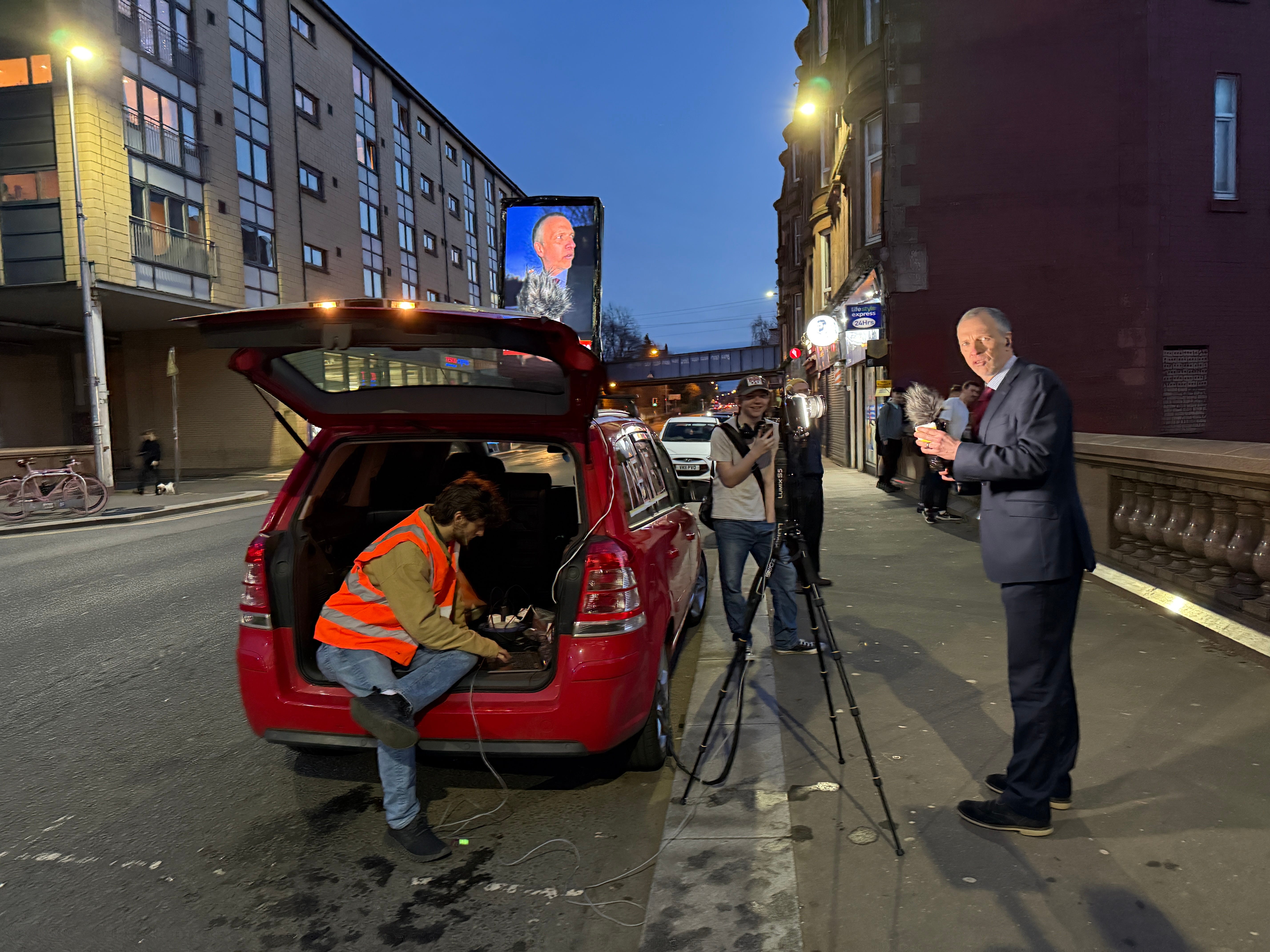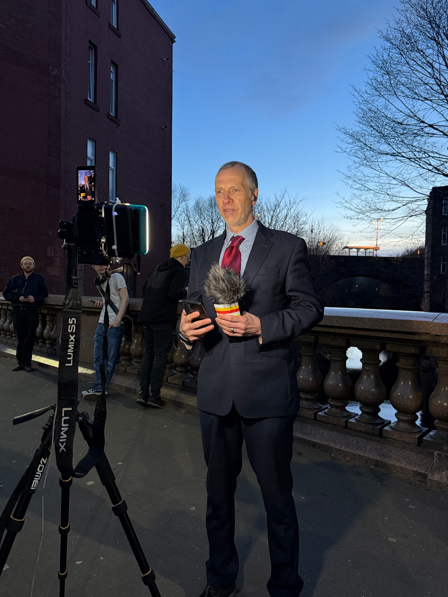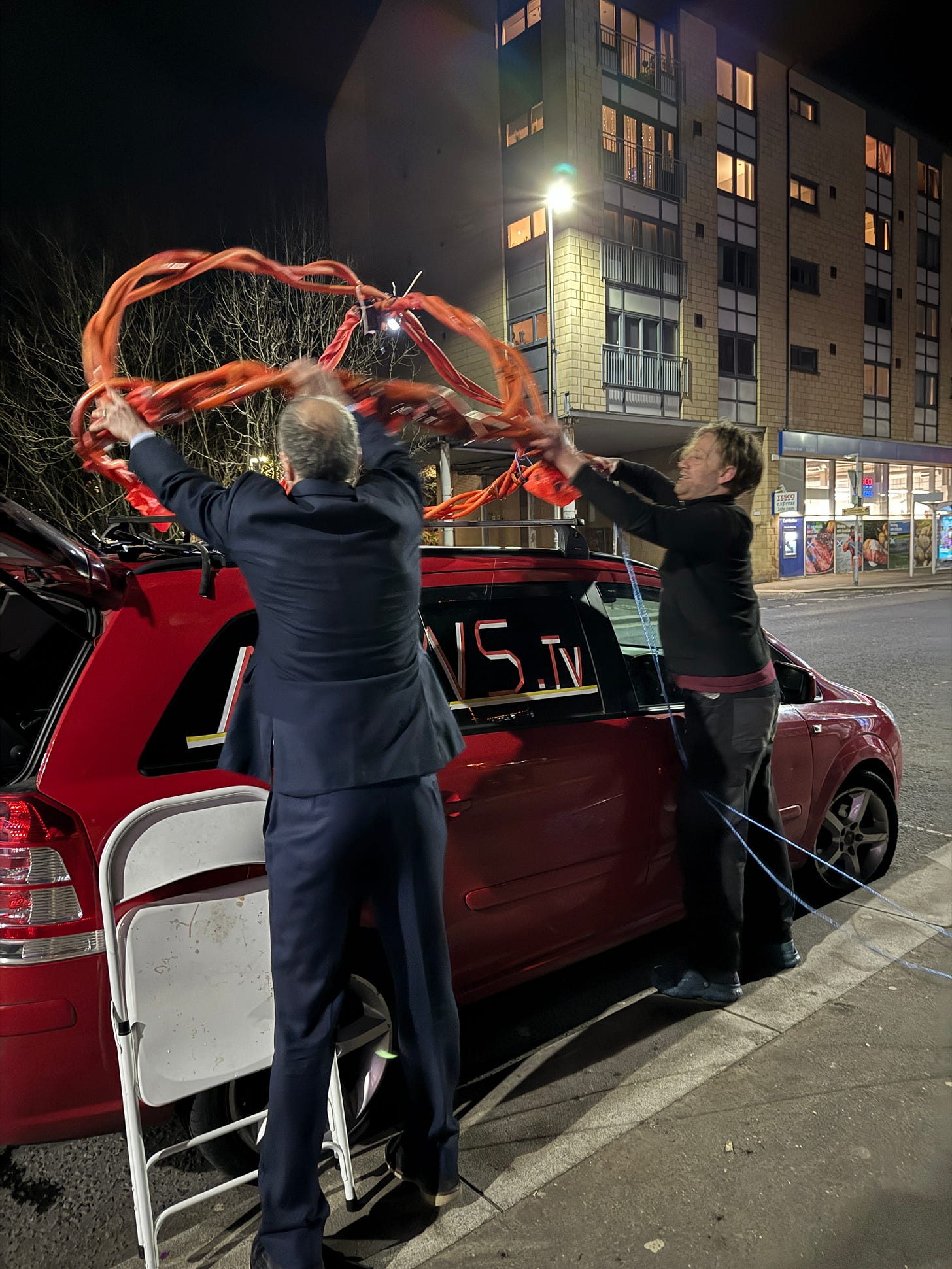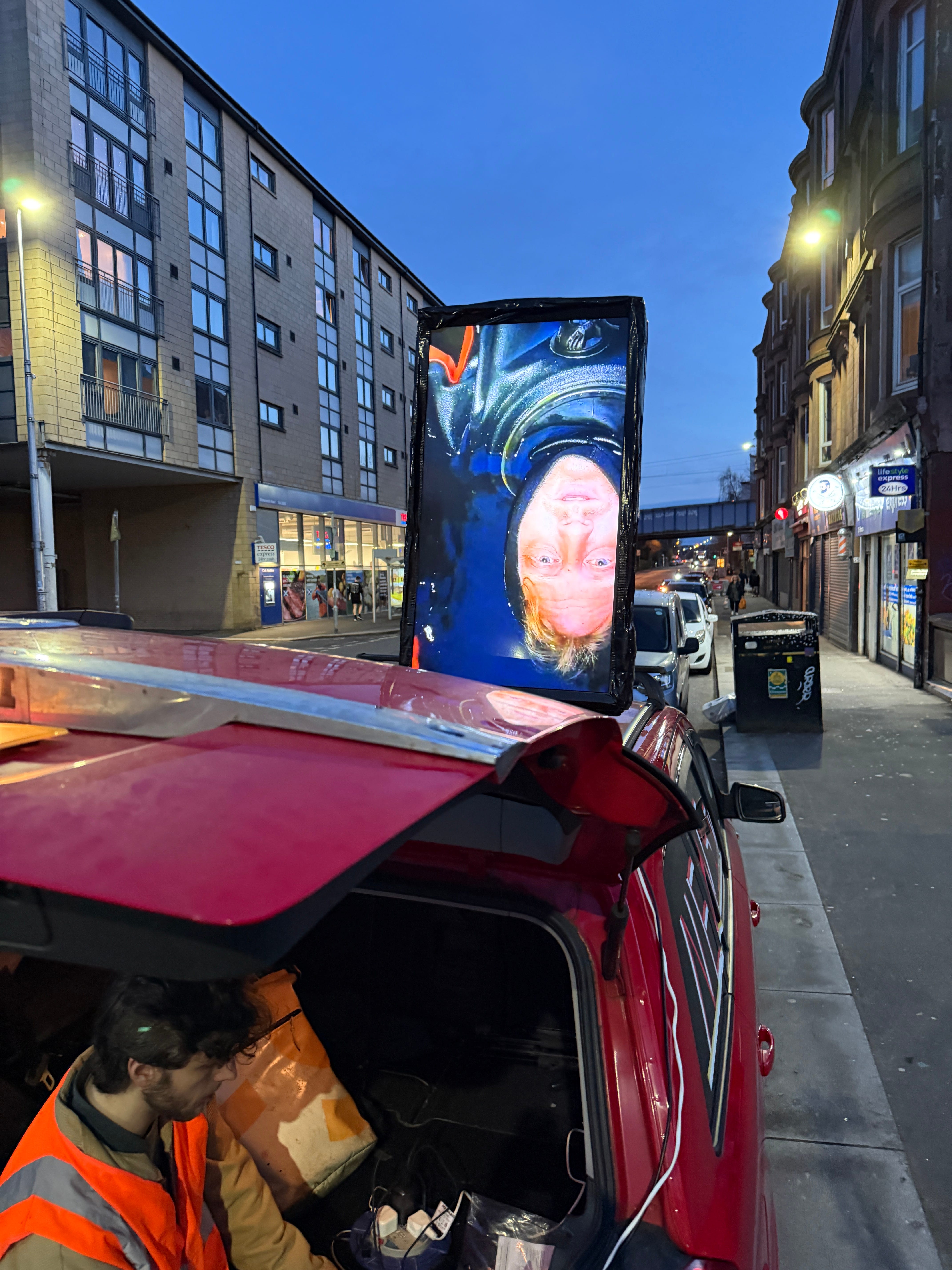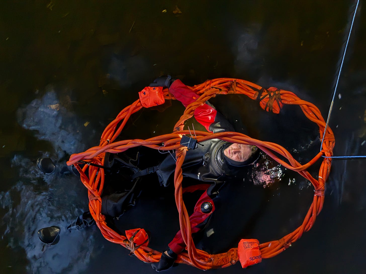 On 25 March 2025, Josh Wirz spent an hour lying in a river. He was wearing a wet suit and was attached to a structure that relayed a video feed while, at the same time, David Hicks (standing in for Berger who was ill) pretended to be a news journalist reporting on the event from the bridge above.