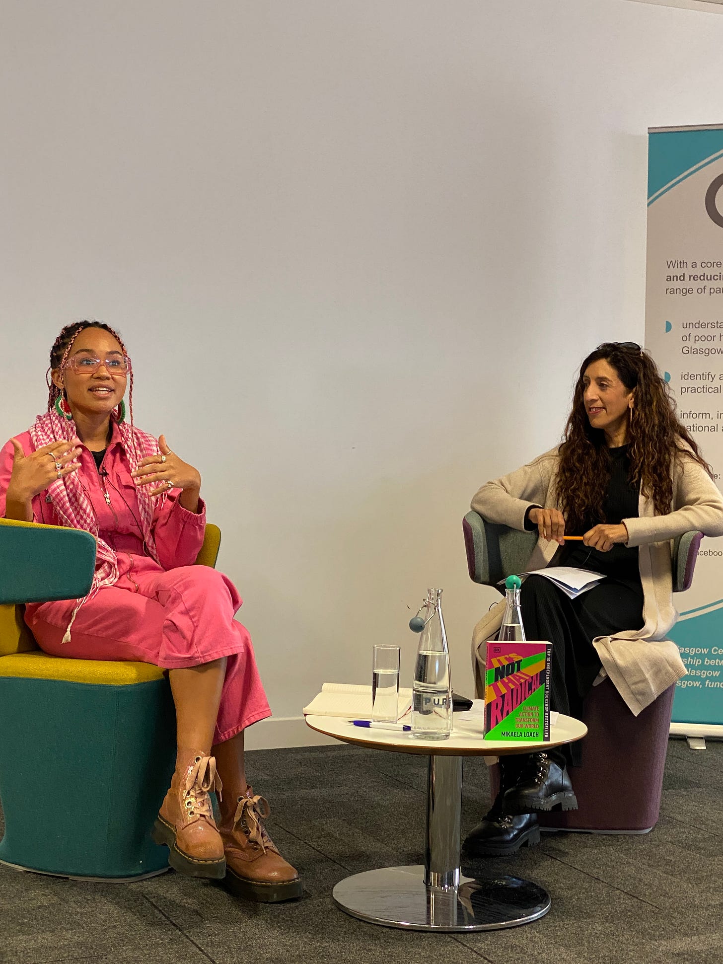 On Tuesday, Mikaela Loach talked about climate justice with Zarina Ahmad in a building overlooking Central Station. Loach became notorious for walking out of Edinburgh Book Festival in protest of its sponsorship by Baillie Gifford. Her activism is all about urgency combined with community engagement. Getting stuck in, not standing back.