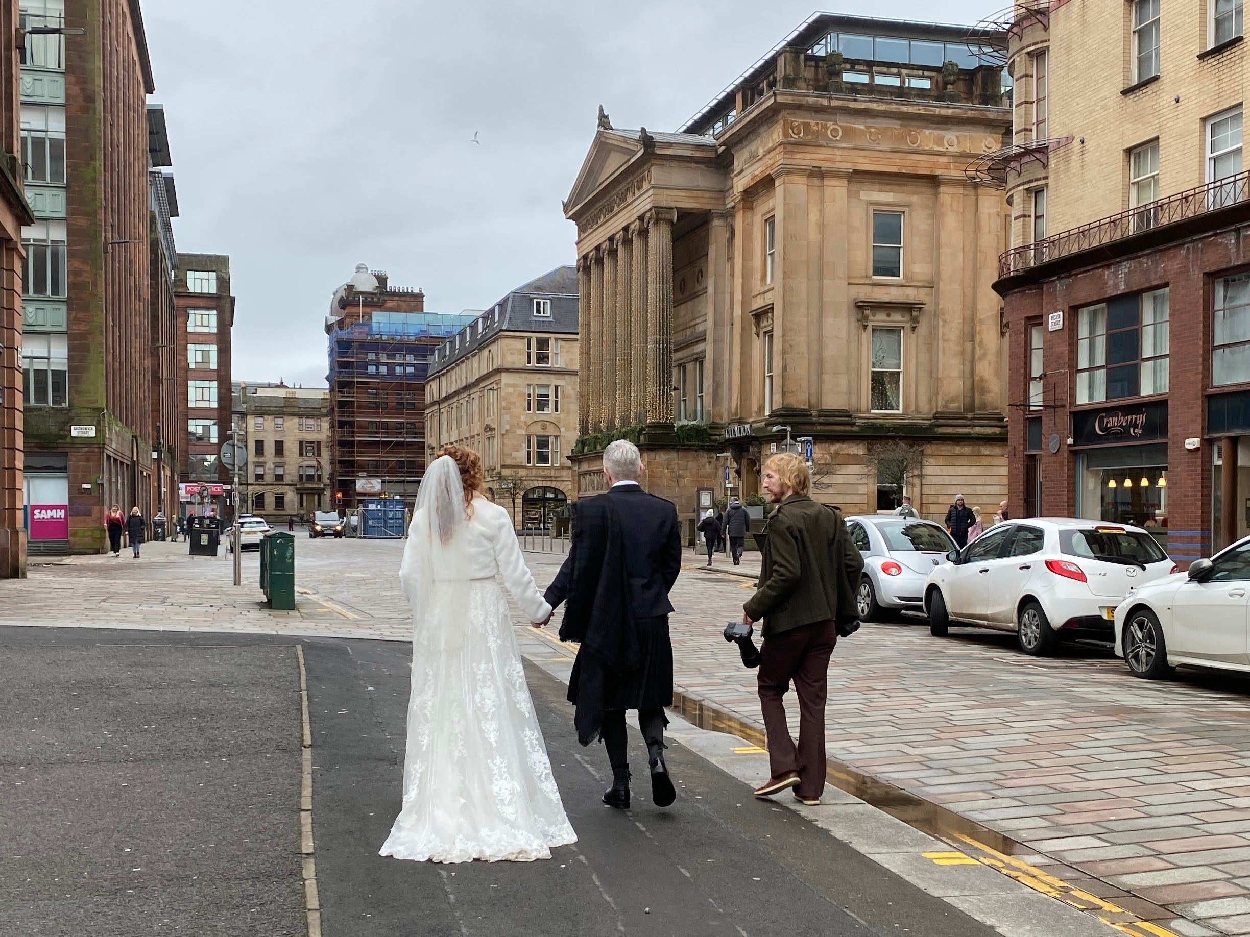 On Saturday, some friends were in Glasgow for a wedding and needed to borrow our parking space. I believe this was the happy couple heading back from their photoshoot.