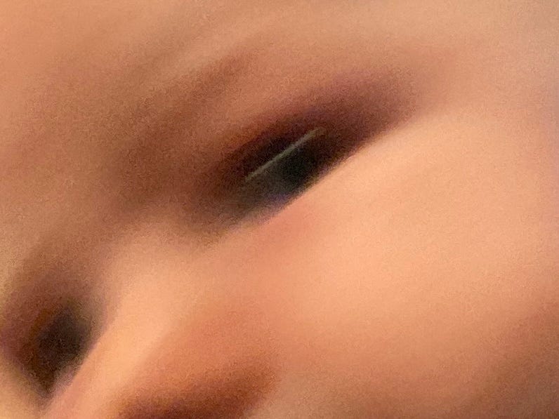 It was my friends’ first outing with the baby. When they returned I had another chance to hang out with my newest pal, Sandy, a two-month-old who has taken to staring intensely at random spots on the wall as if he can see a ghost. Here he is in a moment of movement.