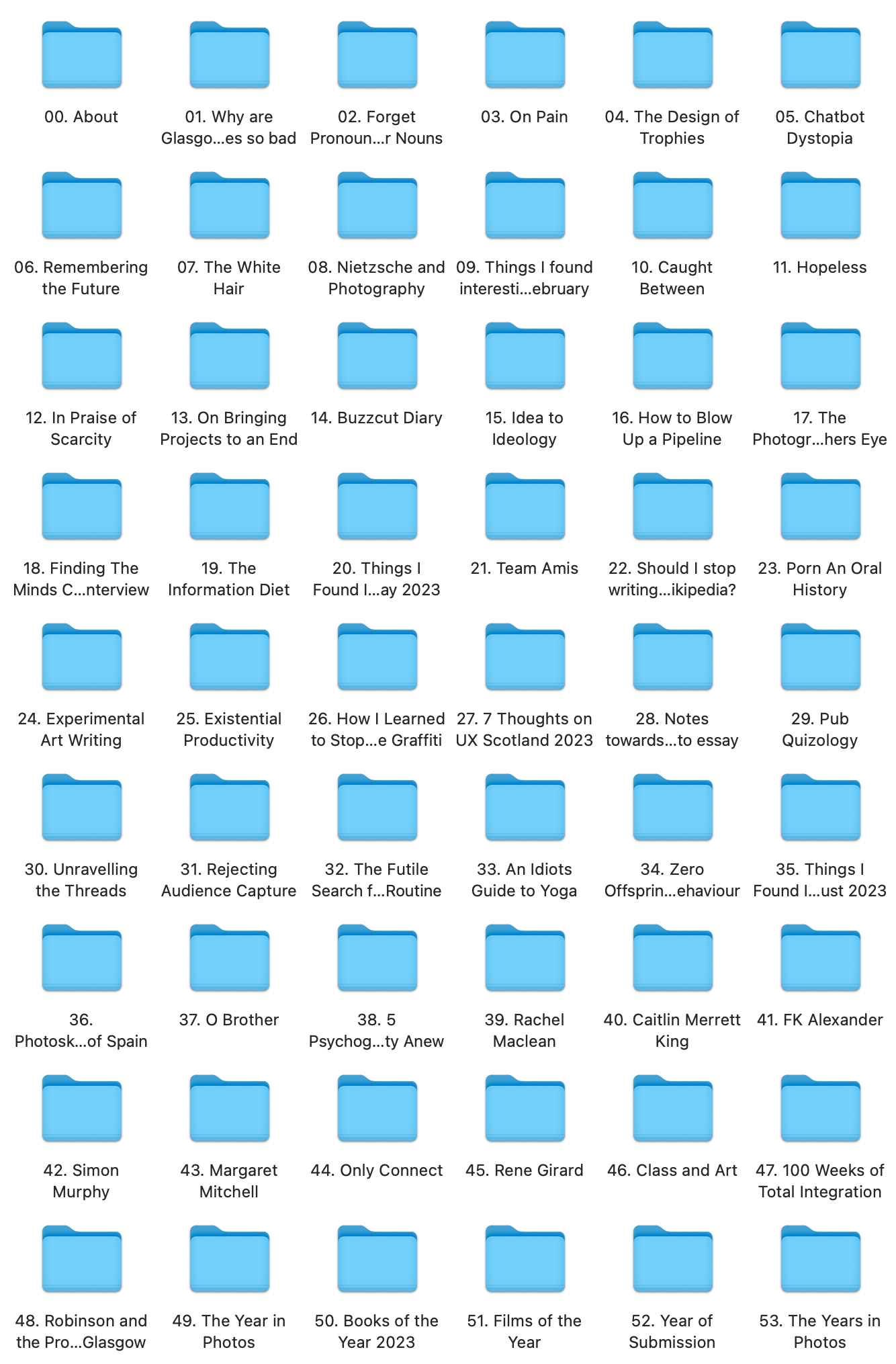 The year of submission was a failure on its own terms, but was a success in overcoming the fear of rejection. The main outcome is that I want to consolidate my energy next year and focus on one thing. I will announce what that is next Sunday.
